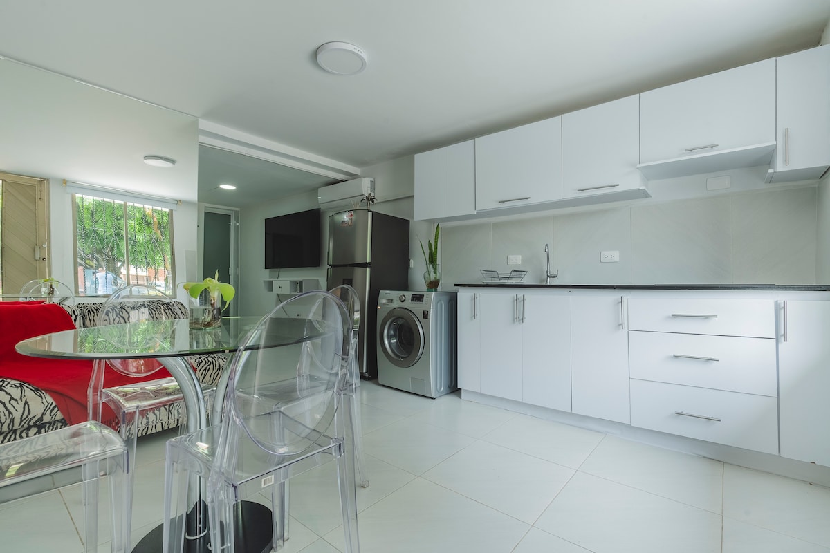 Este apartamento de 1 dormitorio es ideal para una escapada única y tranquila, una noche de trabajo o una estancia prolongada en nuestra ciudad.Barrio Prados del Norte, lugar tranquilo y espacioso cerca a lugares turísticos, a pocos minutos del aeropuerto y la terminal de transporte. Este apartamento le ofrece todo lo necesario para su comodidad, excelente ubicación, que le permitirá llegar a lugares de interés como restaurantes, bares, discotecas, supermercados, farmacias y mucho más.
