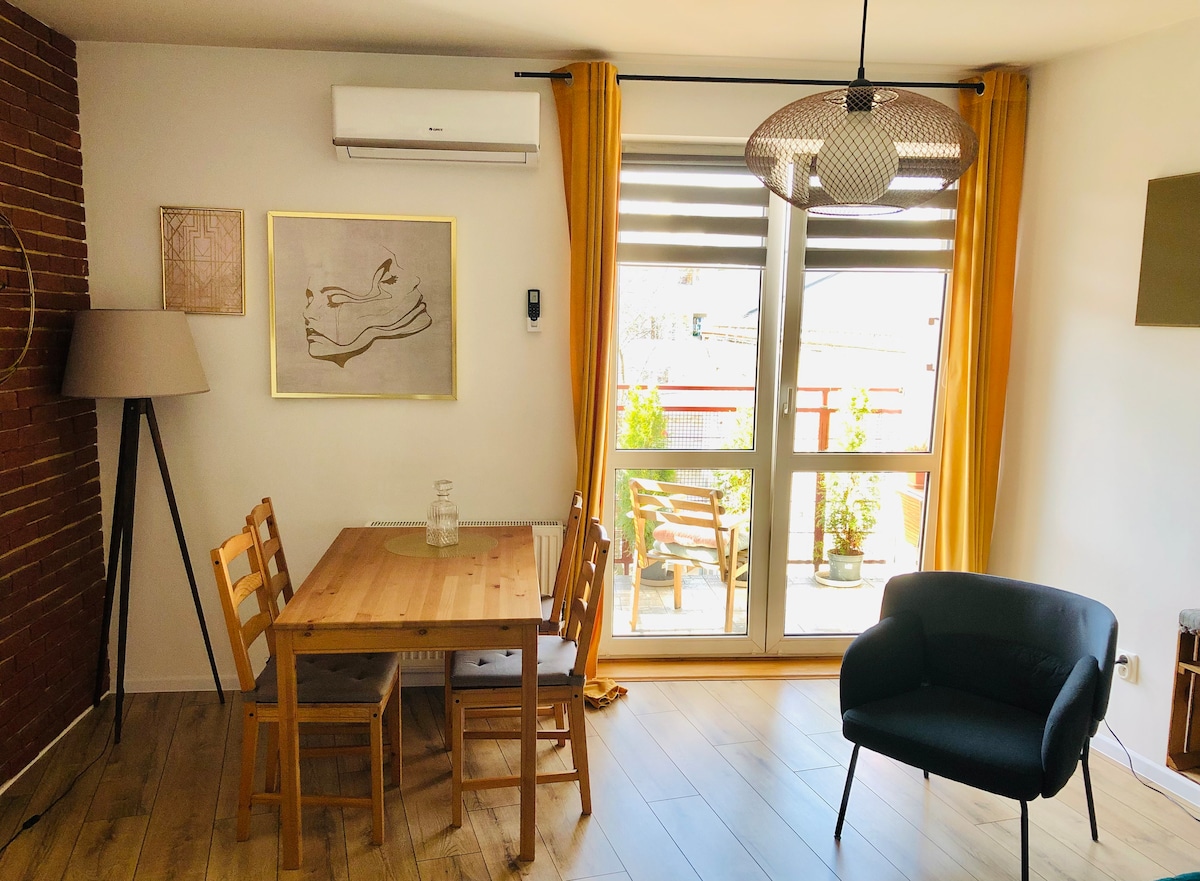 Apartamento cómodo y totalmente equipado en un edificio nuevo. Sala de estar con cocina abierta dividida en comedor y sala de estar. El dormitorio tiene una cama grande y un armario espacioso. También hay un armario como espacio de almacenamiento adicional. En la zona hay tiendas, restaurantes y cafeterías. Equipamiento: aire acondicionado, cafetera, hervidor de agua, plancha, tabla de planchar, lavadora Cómo llegar desde el aeropuerto de Chopin 20 minutos en taxi 50 minutos en transporte público desde el aeropuerto de Modlin 50 minutos en taxi 120 minutos en transporte público