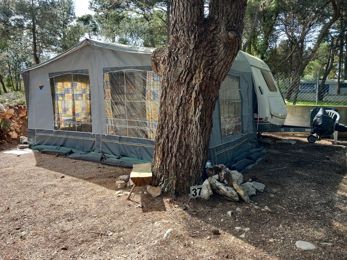 Alojamiento en caravanas con tienda de campaña exterior, situadas a unos 40 m del mar. - Las caravanas son para estancia de 4 personas. - Las caravanas no tienen ducha ni WC, el nudo sanitario está a unos 30 m de distancia. - Las caravanas están equipadas con frigorífico, cocina de gas, utensilios para cocinar y comer, luz eléctrica, mesa y sillas. - Se incluyen sábana bajera, funda de almohada y manta. - El resto de ropa de cama y toallas no están incluidas. ¡tráelos contigo! -Bajo...