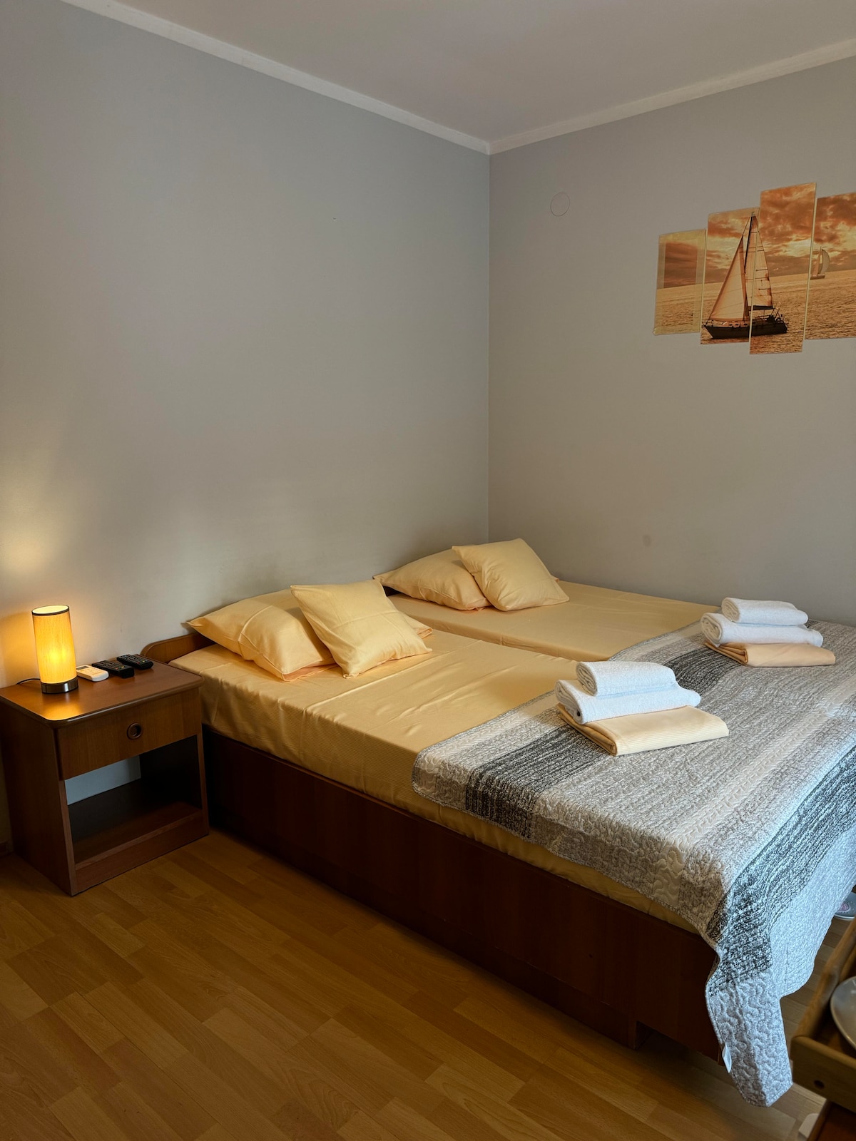 El apartamento está situado en la planta baja de la casa,con vistas al mar. Cerca del mar está a 20 metros (solo cruza la carretera). La panadería está a 100 metros de la casa y la primera tienda y la oficina de correos están a 300 metros. El centro de la ciudad está a 1000 metros de la casa. El restaurante está frente a la casa y la casa tiene estacionamiento privado. El centro de la ciudad está a unos 10 minutos de la aplicación y el paseo hasta la ciudad es junto al hermoso mar.