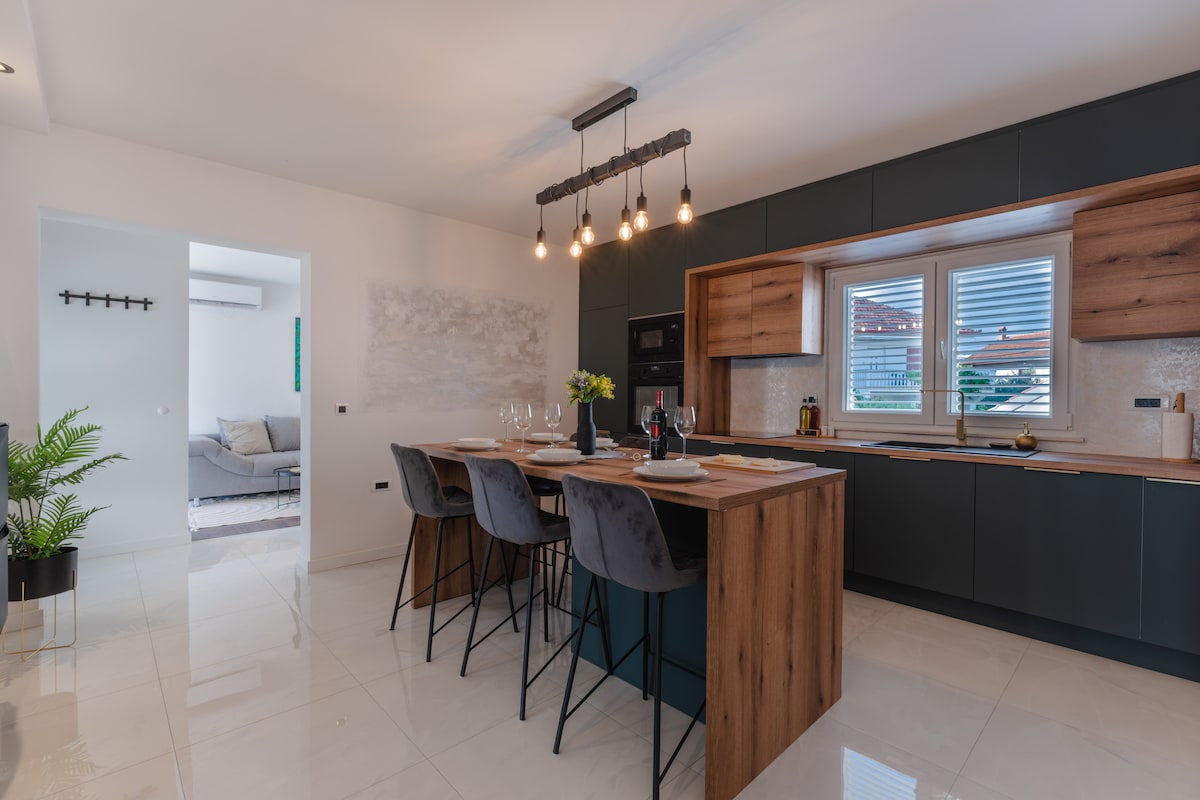 La encantadora villa Luna, con capacidad para seis personas, ofrece todas las comodidades que uno podría buscar en un hogar contemporáneo. Se encuentra en el centro de la ciudad de Zadar, a solo 5 minutos en coche de la parte histórica de la ciudad de Zadar. Su ubicación perfecta te ofrece la oportunidad de disfrutar del casco antiguo, pero también de la sensación única de privacidad en su impresionante terraza con piscina y hermoso jardín. La villa consta de 3 dormitorios, 2 baños, aseo separado, cocina de planta abierta, comedor y sala de estar con pantalla LCD.