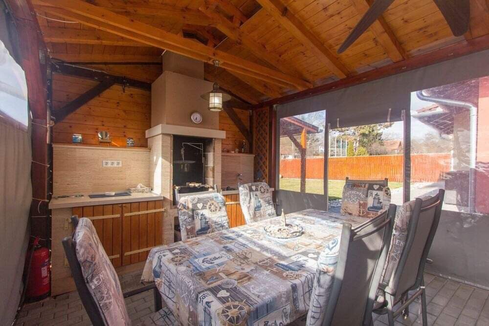 Esta villa de 400 metros cuadrados de nueva construcción de 5 dormitorios se encuentra en Keszthely-Kertváros, con una vista panorámica de Hévíz. La casa tiene 4 baños, una gran sala de estar americana con cocina, un área de bienestar (jacuzzi, sauna), una sala de billar, un rincón de cine, un garaje de dos pisos, una piscina al aire libre en una parcela de 1700 metros cuadrados. La cocina está totalmente equipada y mecanizada. El estacionamiento adicional también es fácil. El barrio es adecuado para relajarse. Hévíz está a solo 3 km.