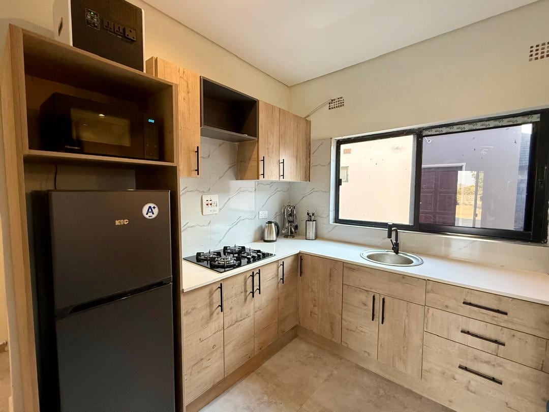 Forget your worries in this spacious and serene one-bedroom retreat. The One by Tefa offers solar power, fast Wi-Fi, a smart TV with Netflix, Prime Video, and YouTube. Enjoy a fully fitted kitchen, modern shower, a private patio perfect, a Gym and Swimming Pool for relaxing or unwinding after a long day — your calm escape in a lush, quiet neighborhood of Rockfield, Lusaka.