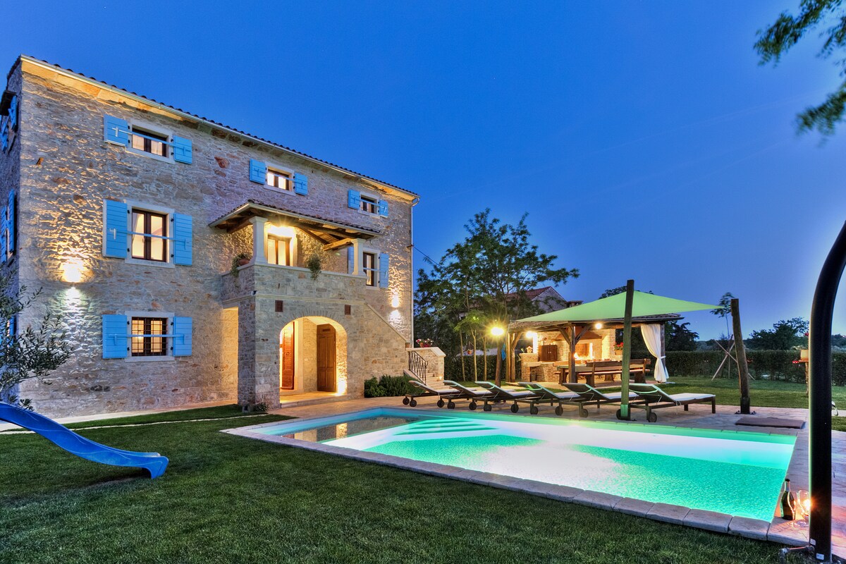 Antigua casa de piedra de Istria, completamente renovada, con un gran jardín, piscina nueva, cocina al aire libre, aparcamiento privado y muchas zonas de estar a la sombra del gran jardín. Cocina totalmente equipada con todos los utensilios hechos para satisfacer a todos los entusiastas de la cocina, sala de estar con TV, internet inalámbrico, aire acondicionado. La casa es perfecta para familias o amigos que buscan una casa espaciosa con un gran jardín verde para relajarse a la sombra o junto a la nueva piscina para recargar las pilas.