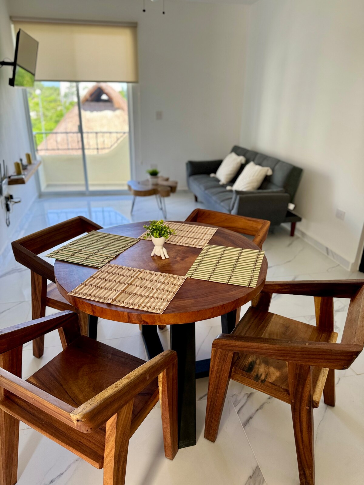 Descubre tu escapada elevada en la jungla en este elegante departamento de dos recámaras en Siwa Tulum, diseñado para viajeros que buscan espacio, privacidad y comodidad. A solo minutos de las playas de Tulum y de su vibrante zona urbana. Rodeada de exuberante vegetación, esta residencia cuidadosamente diseñada combina arquitectura moderna con la naturaleza, ofreciendo tu propia alberca profunda privada, terraza en la azotea y área de asador—perfectas para días de relajación y noches inolvidable