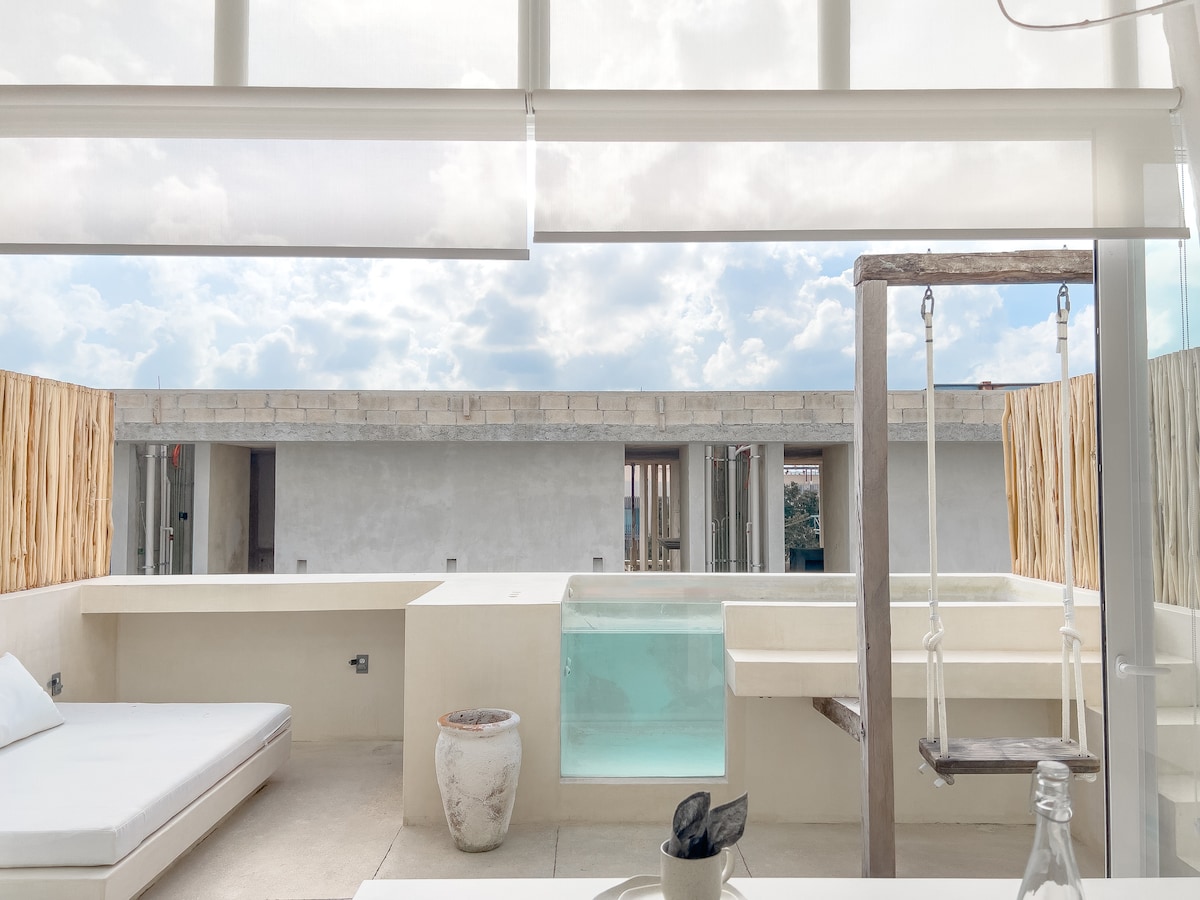 Santuario privado en la azotea con selva, piscina profunda, terraza para contemplar el atardecer, piscinas infinitas con esculturas y acceso a servicios de bienestar de lujo en Siwa Élevé. Rodeado por una exuberante selva, pero a pocos minutos de playas, cenotes, restaurantes y vida nocturna, este refugio de 1 habitación combina un diseño moderno, espacios interiores y exteriores, atardeceres en la azotea, servicios de spa y una vibrante energía social con privacidad, mañanas tranquilas y experiencias inolvidables en Tulum, ideales para el romance, la recuperación, la celebración y la conexión en un refugio de primer nivel para todos.