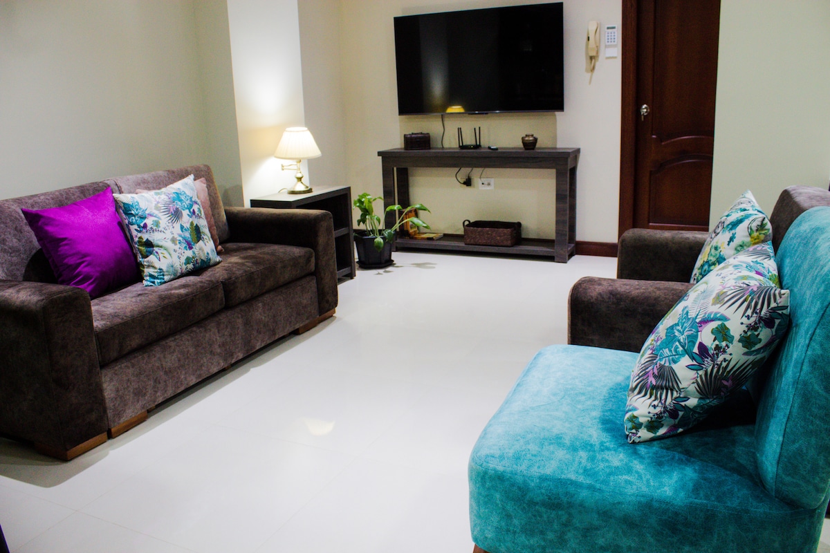 El departamento es moderno y está ubicado en el centro histórico de la ciudad, a 2 cuadras del parque central. El departamento está en la planta baja. Lugar tranquilo para descansar en camas y colchones nuevos y cómodos. Ha sido diseñado pensando en tus necesidades. Tiene todo lo que necesitas para una estancia cómoda y tranquila. Tendrás disponible una cocina totalmente equipada, acceso a Internet de alta velocidad, TV inteligente, espacio para trabajar con una computadora portátil, etc.