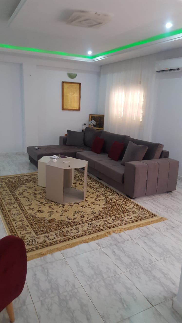 Passez un agréable séjour dans cet hébergement confortable à Sousse dans un quartier tranquille (Hay riadh) Appartement meublé et climatisé. 1 chambre avec lit deux places (possibilité d’ajouter des matelas en fonction du nombre de personnes) -Surveillance vidéo -Épiceries et magasins à proximité -3min à pieds de la station Taxi -5min en voiture du centre ville -8min en voiture de la plage