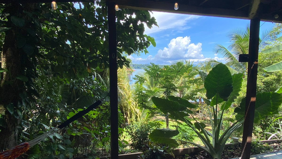 ¡Sin tarifas de servicio! Relájate en nuestra tranquila escapada a la isla ubicada justo encima del Caribe. Ubicado en la colina con vistas al océano, donde dormirás con los sonidos de la selva y las olas. La suite incluye una cama tamaño queen, un baño privado y una pequeña cocina al aire libre y una pequeña cocina al aire libre. Nuestra ubicación te pone en medio de tu propia aventura. Haz una corta caminata por la selva hasta playas onduladas o Old Bank. Estamos a 5 minutos en barco de restaurantes y clubes de Bocas Town. * Toda nuestra propiedad es PARA NO FUMADORES.*