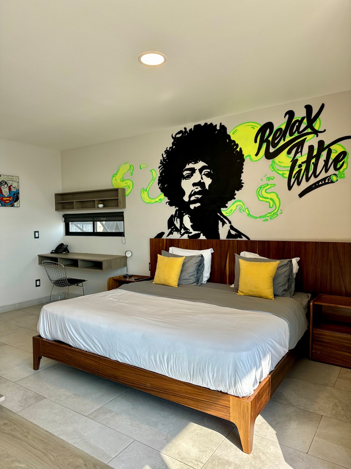 - Acogedor y exclusivo estudio ejecutivo con cama queen-size, escritorio y aire acondicionado. - Balcón para tomar aire fresco. - Cocina equipada. - Ingreso con cerradura inteligente y clave personalizada y exclusiva para cada huésped. - Rooftop panorámico con restaurante en el nivel 9. - Sala de juntas equipada para reuniones profesionales (consultar disponibilidad). - Acceso 24/7 con código personalizado. IMPORTANTE: No contamos con estacionamiento privado dentro de la propiedad.