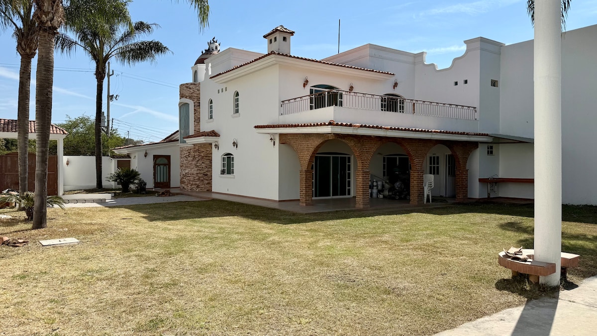 Casa tipo Hacienda Con chimenea, un área de jardín muy amplio, donde sentiras La Paz de de la naturaleza, y podrás disfrutar de tardes con tus hijos y o carne asada con amigos y los niños pueden jugar y correr También contamos con alberca de 5 x4 tibia en meses cálidos fría en invierno WiFi, balcón con hamaca para disfrutar la vista Ideal para desconectarte de la ciudad. si estás cansado o estresado es el lugar indicado Estamos cerca de la barranca y zoológico de Guadalajara