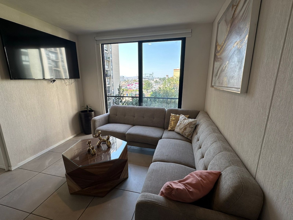 Moderno y cómodo departamento a solo 2 minutos a pie de la Expo Guadalajara, el recinto de convenciones y exposiciones más importante de la ciudad. Ubicado en la reconocida ZONA EXPO, excelente ubicación y rodeado de centros comerciales, restaurantes y zonas sociales, turísticas y de negocios. Disfruta de una estancia con excelente conectividad a los principales puntos de Guadalajara y de todos los servicios que necesitas para una visita cómoda, elegante y productiva. Amenidades de lujo.