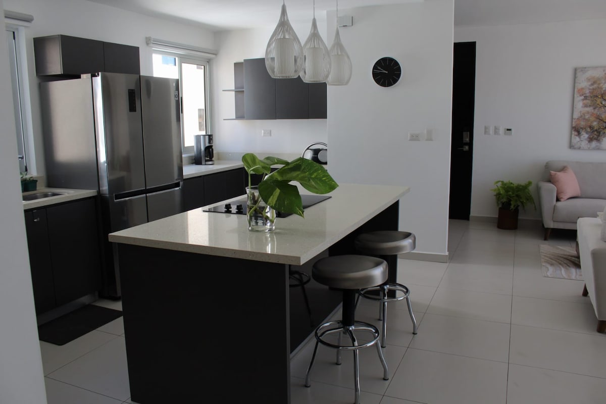 Acogedora casa perfecta para familias, ubicada en un vecindario tranquilo y familiar con acceso a de juegos infantiles en una comunidad cerrada y con seguridad 24/7, a sólo quince minutos de la playa y la ciudad. Equipada para alojar 6 personas máximo, con aire acondicionado y ventiladores en todas las habitaciones, una cocina totalmente equipada. Todas las ventanas tienen malla de protección contra mosquitos. Fácil acceso a centros comerciales, restaurantes y hospitales.