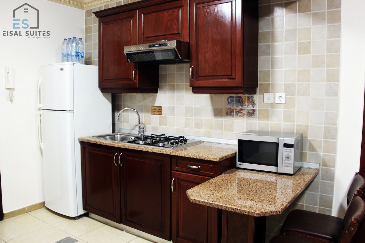 hotel apartment with all services in the middle of Amman city. A free break fast provided every day by the hotel, high speed free WIFI, free access to the gym and free parking. all transportation services are available, 15 minutes to the downtown by car, Airport transportation available upon request.