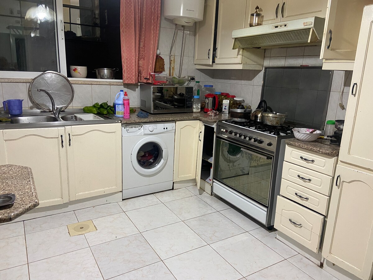 Welcome to our spacious 3-room apartment with a balcony and a fully equipped kitchen — ideal for families and groups. Enjoy a comfortable stay in a great location near attractions, shops, and restaurants. Amenities & Fees: • Fan and heater in each room (no air conditioner) • Heater: 5 JD per heater per day (upon request) • Washing machine: 3 JD per wash • Early check-in: 3 JD (subject to availability) • Late check-out: 3 JD (subject to availability)