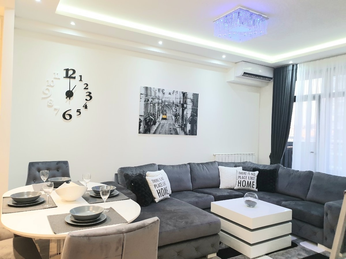 *** You’ll be one of the first guests in our brand new apartment! *** This ultra-luxury,spacious apartment is set in the heart of Belgrade’s pedestrian zone, Obilićev Venac. Designed by a renowned architect, it features high ceilings, large format oak floors, Italian marble, Miele appliances, and natural leather furniture. Overlooking the vibrant pedestrian street,it offers three 65” LG TVs, floor heating in both bathrooms,and a modern fireplace-blending top-tier comfort with timeless elegance.