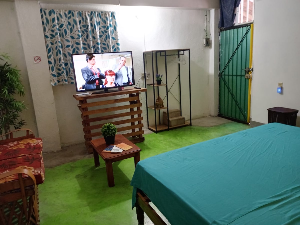 El Loft o estudio cuenta con una cama king size, cocineta equipada, a/c, tv cable y wifi. Esta a solo una cuadra de la playa de la madera (3 a 5 min caminando) y menos de 10 min caminando del centro de Zihuatanejo, Playa la Ropa 15 min caminando. Esta en una calle muy viva donde encontraras varios restaurantes, cafeterías para comer y lugares de oció. Excelente ubicación.