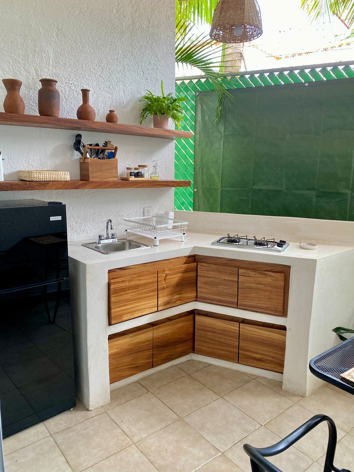 A bright furnished independent apartment overlooking the tropical vegetation of La Ropa Beach neighborhood. It features independent dining/kitchenette space with plenty of ventilation, an air-conditioned bedroom with king sized bed, and a private bath with tub. Weekly bed linen and towel change is included. Nanche apartment is located on an upper level of the multi-level El Tamarindo at Casa Calamondin family complex, Colonia La Ropa.
