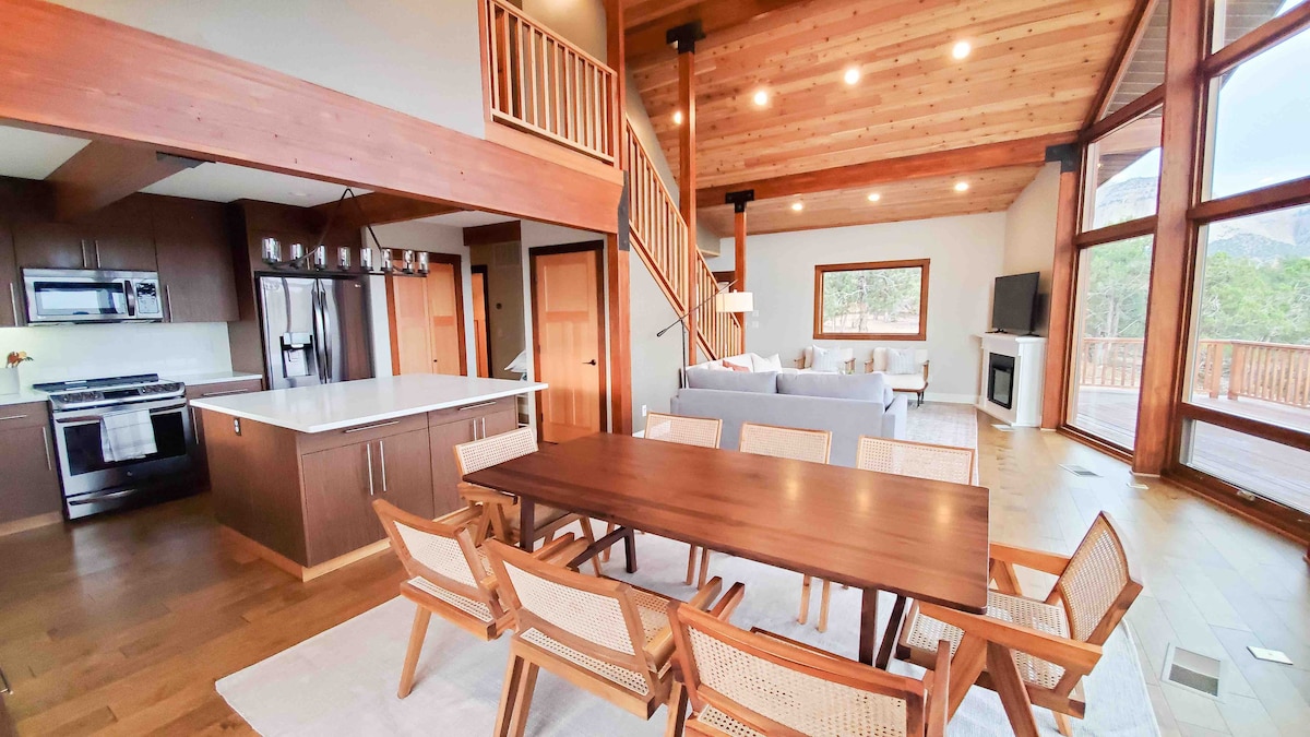 Disfruta de vistas panorámicas y sin obstáculos de los acantilados blancos, las montañas y el valle. Vistas desde el interior a través de ventanas del suelo al techo, o desde el exterior desde la terraza de cedro de 1000 pies cuadrados. La cabaña se encuentra en un terreno esquinero que limita con la reserva federal de tierras, está rodeada de cedros entrecruzados con senderos de ciervos y está inundada de luz solar natural durante todo el día. ¡A poca distancia en coche de Zion, Bryce, Coral Pink Sand Dunes, Grand Staircase-Escalante y muchos otros destinos!