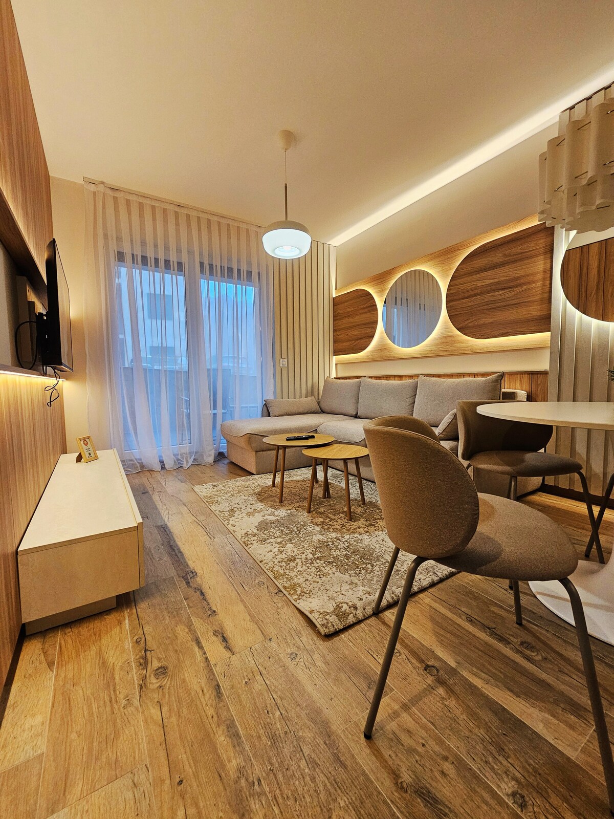 Dobrodošli u naše nove apartmane u tek izgrađenoj zgradi, na svega pet minuta šetnje od samog centra Zlatibora. Savršeno mesto za odmor, opuštanje i uživanje u planinskom ambijentu. Svaki detalj prostora pažljivo je odabran kako biste se vi i vaši najmiliji osećali prijatno. Gostima su na raspolaganju privatni parking i spa centar u okviru objekta, idealni za potpunu relaksaciju nakon dana provedenog u prirodu. Dođite da uživate u miru, udobnosti i toploj atmosferi naših apartmana.