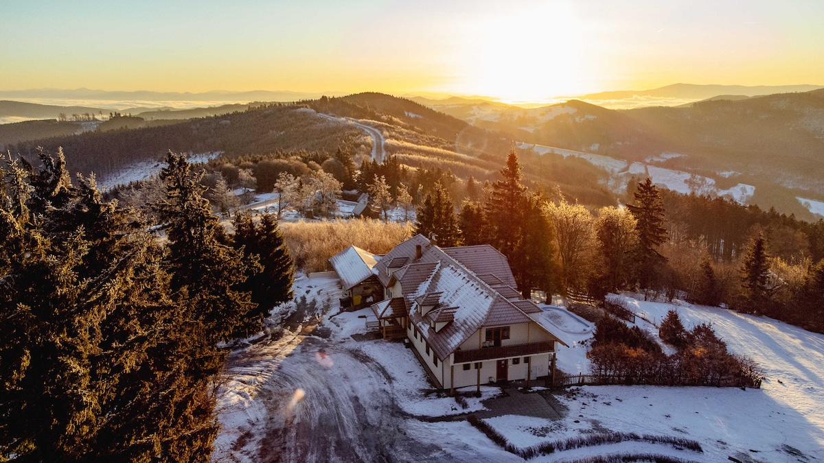 Imagina un lugar donde las montañas abrazan el horizonte y la tradición se mezcla a la perfección con el lujo. Bienvenido a Wellness Chalet Kohútka, una nueva cabaña de madera ubicada en la frontera checoslovaca, donde las montañas Beskydy se despliegan en todo su esplendor. Esta joya, a pocos pasos de la estación de esquí de Kohútka, está diseñada para aquellos que deseen experimentar unas vacaciones activas en cada temporada. Ya sea que seas esquiador, excursionista, ciclista, motociclista o simplemente busques un refugio tranquilo, el Chalet Kohútka lo tiene todo para ti.